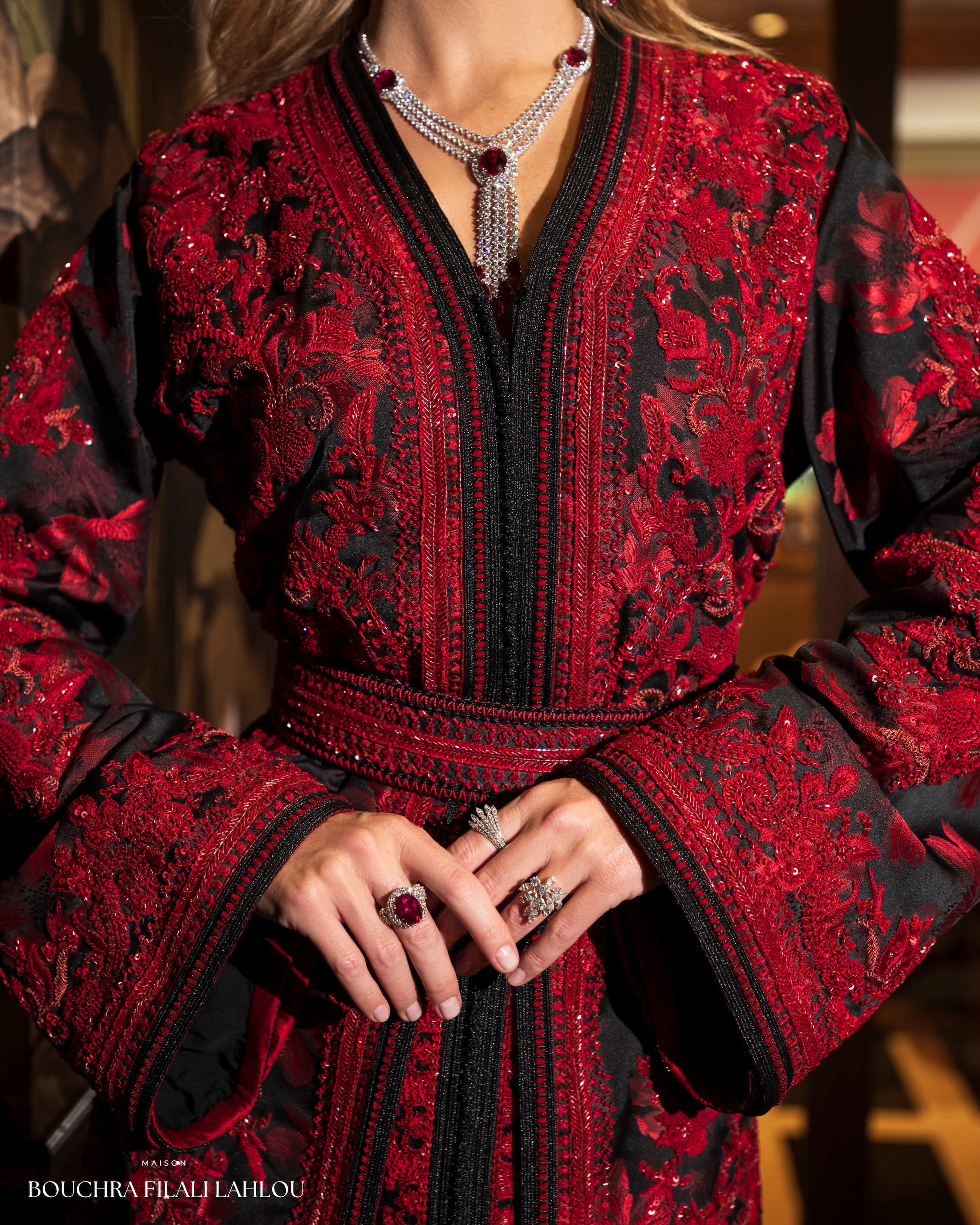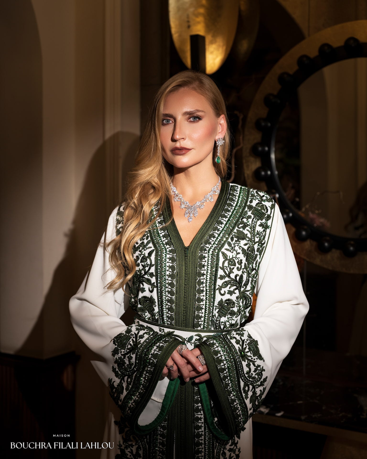 "I chose three outfits from Madame Bouchra for my wedding, and since I was abroad, I couldn’t closely follow the progress of the caftans. I trusted her completely, and she proved to be a woman of her word"