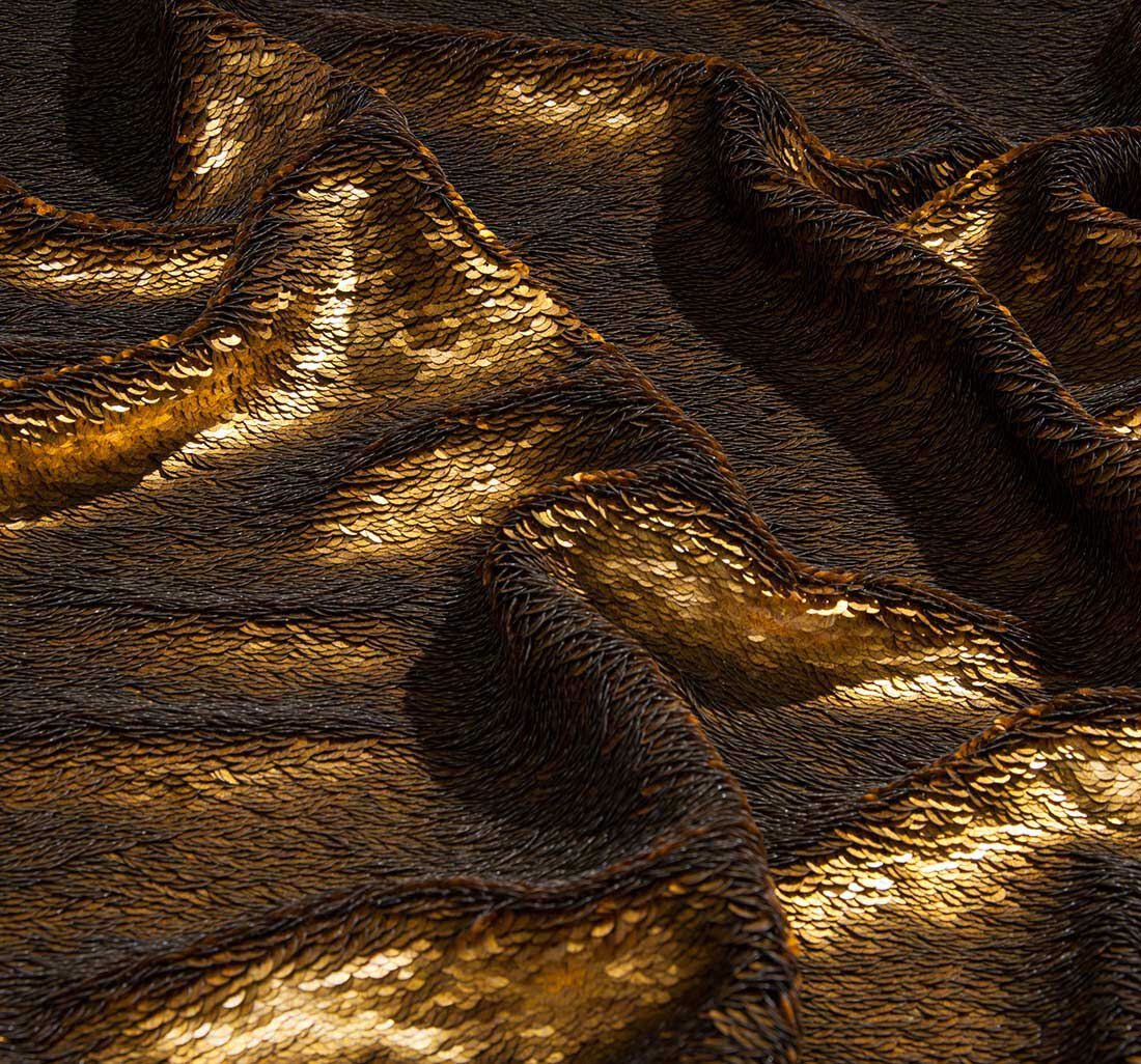 Silk, velvet, crepe, organza, satin blends, responsibly sourced.